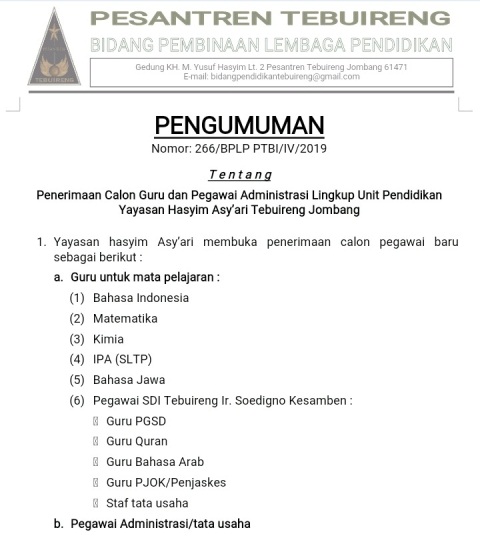Lowongan Mengajar Mojoagung Jombang- 6 komplek masjid darul falah, gambiran, mojoagung, jombang email: